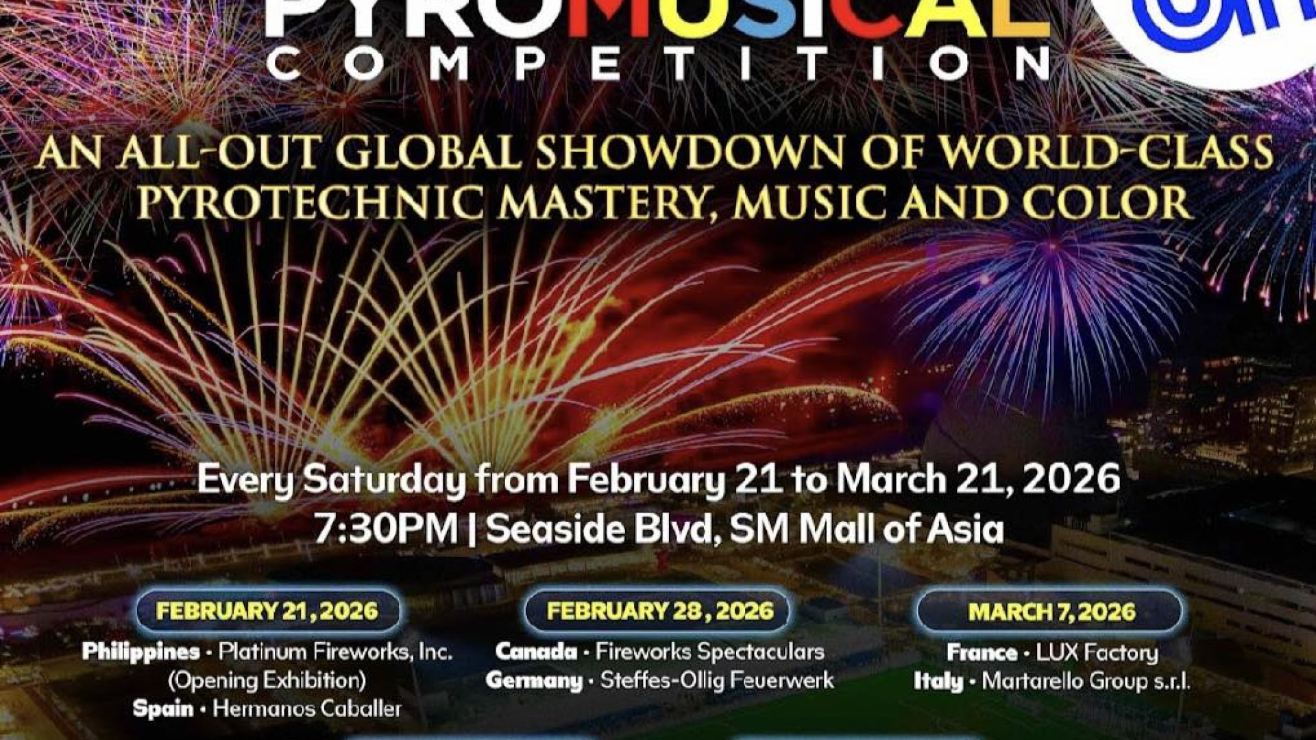 The Philippine International Pyromusical Competition 2026 features top pyrotechnic teams from across the globe: